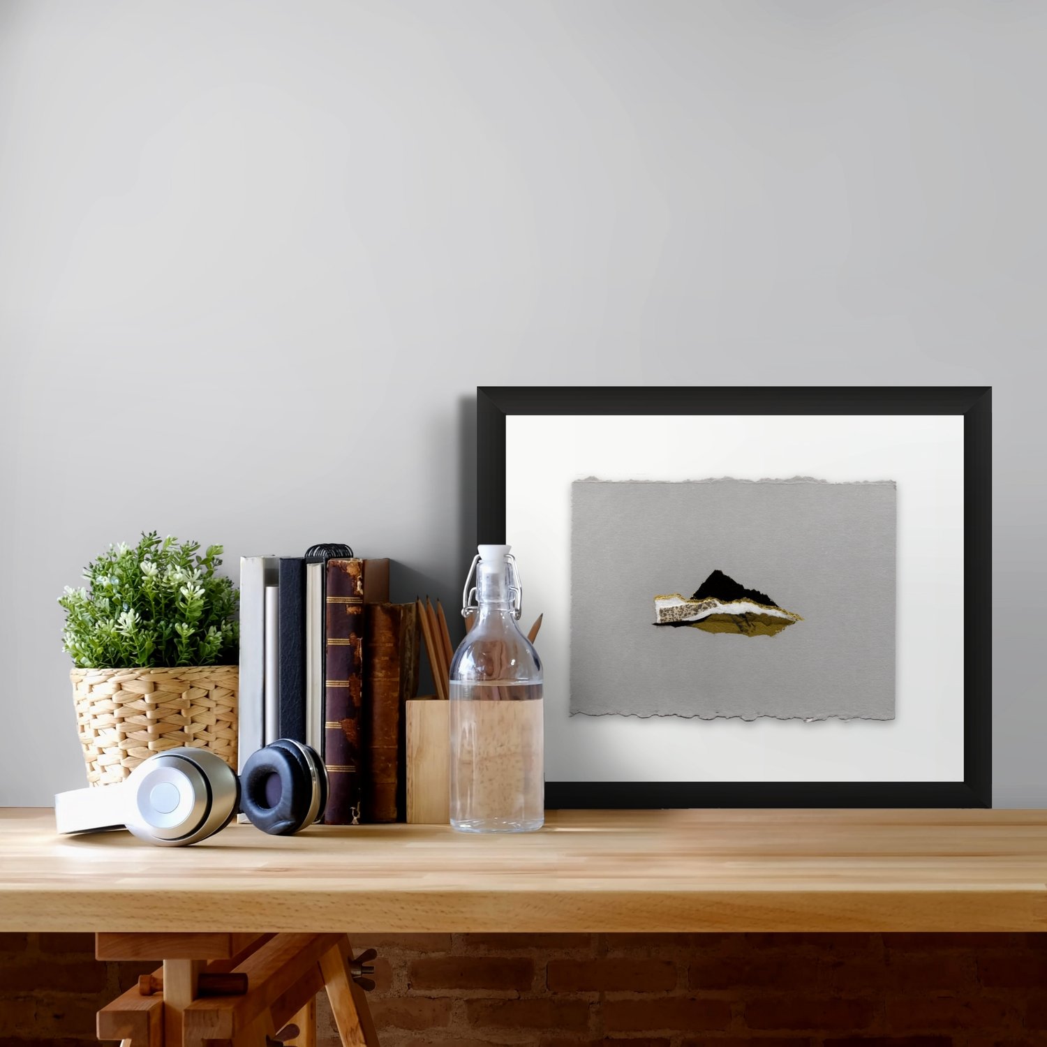 Allison’s collage Untitled with Gold #12 displayed on a hallway table.